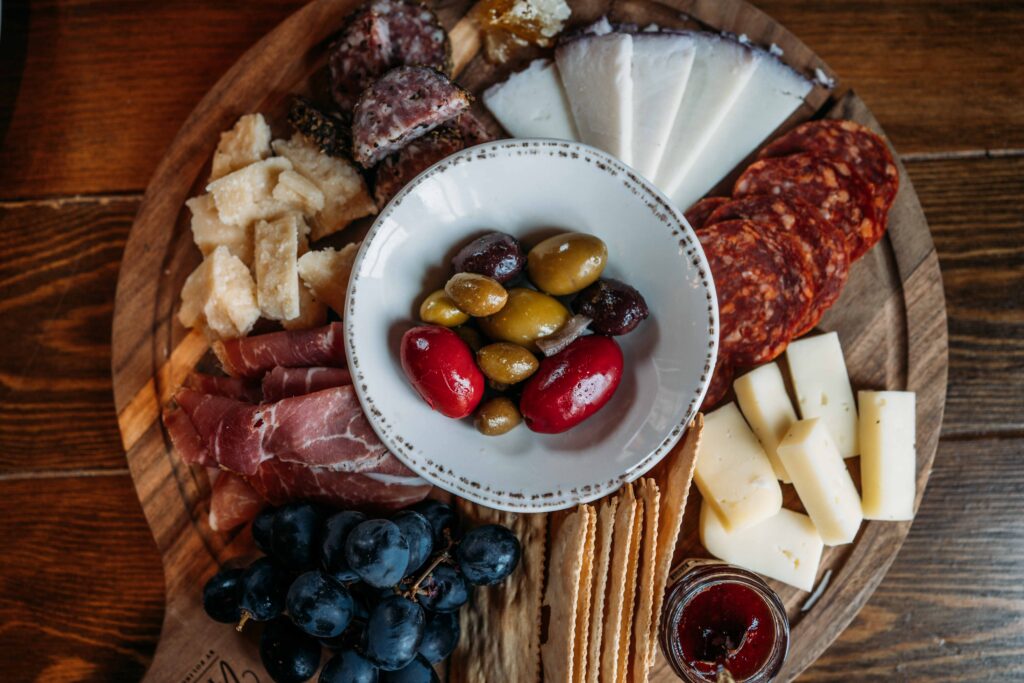sliced porchetta, chocolate covered figs, herbed hazelnuts, smoked scamorza, manchego, salami, spiced apples, grape mostarda, crostini, pumpkin ricotta with maple syrup & pepitas