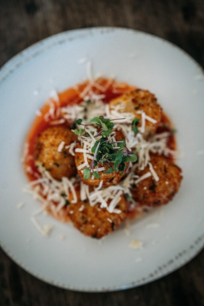 fried risotto balls, ham, mozzarella, parmigiano, our tomato sauce