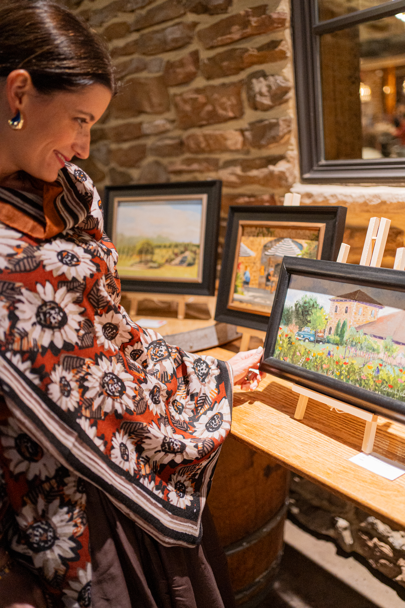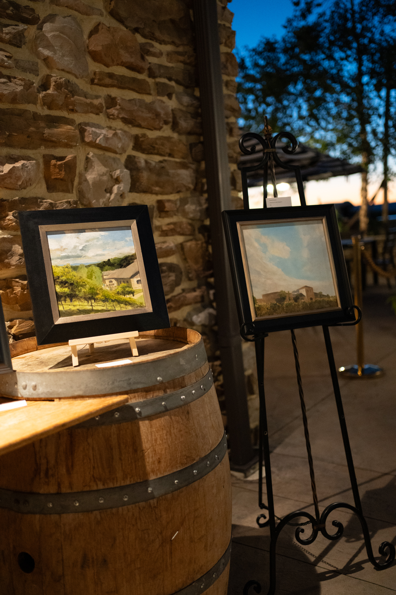But the real treat was our exclusive access to the first Plein Air Pop-Up Gallery, featuring the talents of local artists Russ Slocum and Karen Weber. Having spent two weeks at the Estate creating and preparing, their twelve remarkable pieces adorned the gallery walls. Russ and Karen were there, eager to share their passion for art and the hidden gems around the Estate that had inspired their work. It was a captivating and enriching experience that added even more charm to an already unforgettable evening.